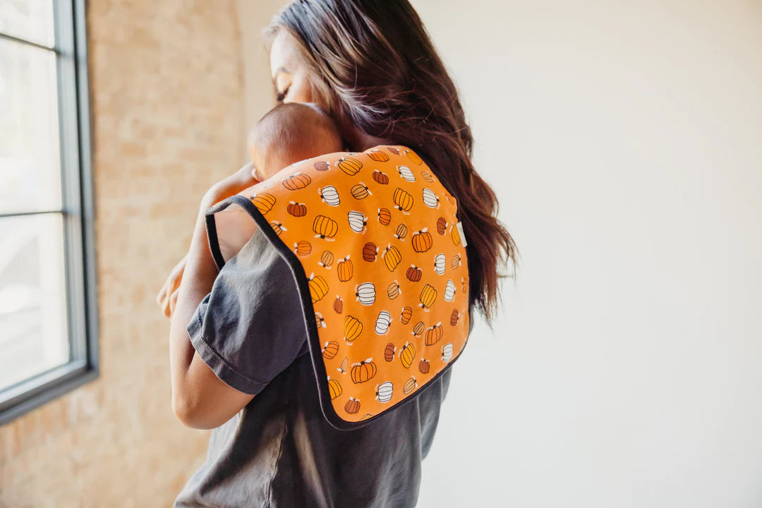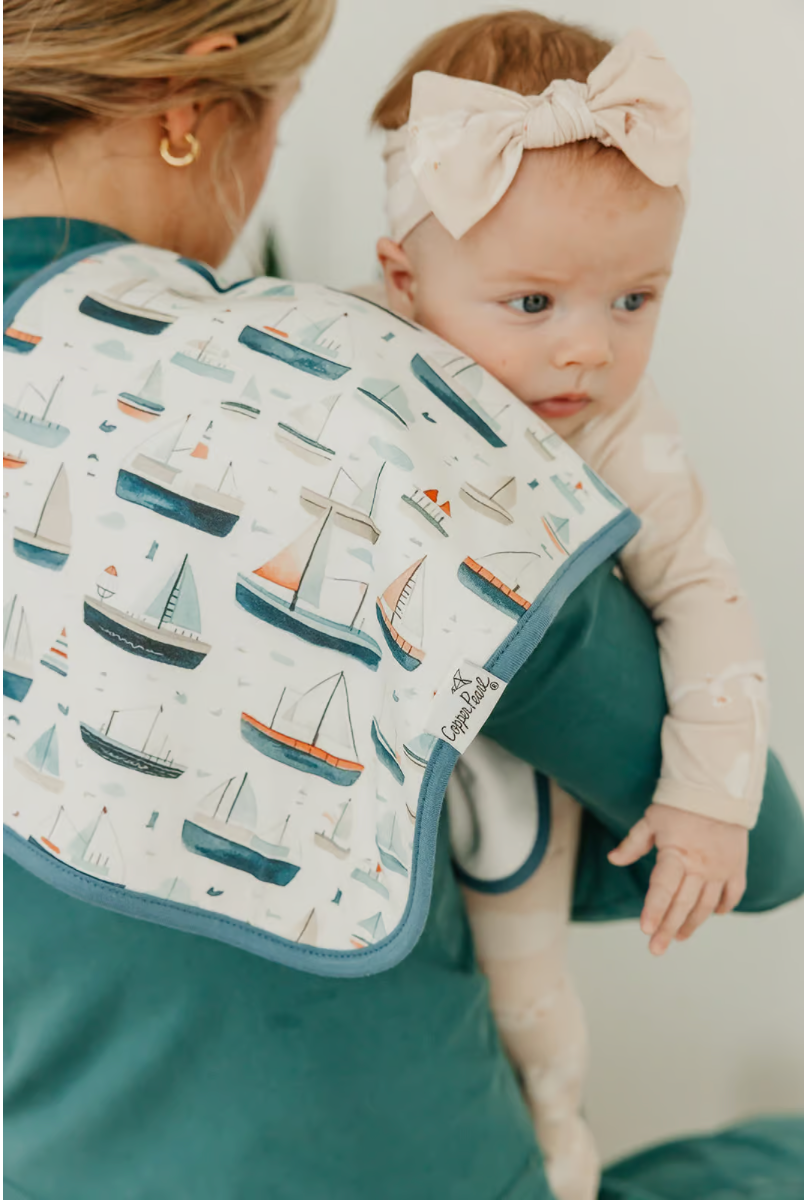 Copper Pearl's burp cloths are designed with baby’s comfort in mind. That’s why they created them with 100% ultra-soft cotton layers on the front (patterned) and back (plain white). You can feel confident that baby will feel cozy against your shoulder while burping.
