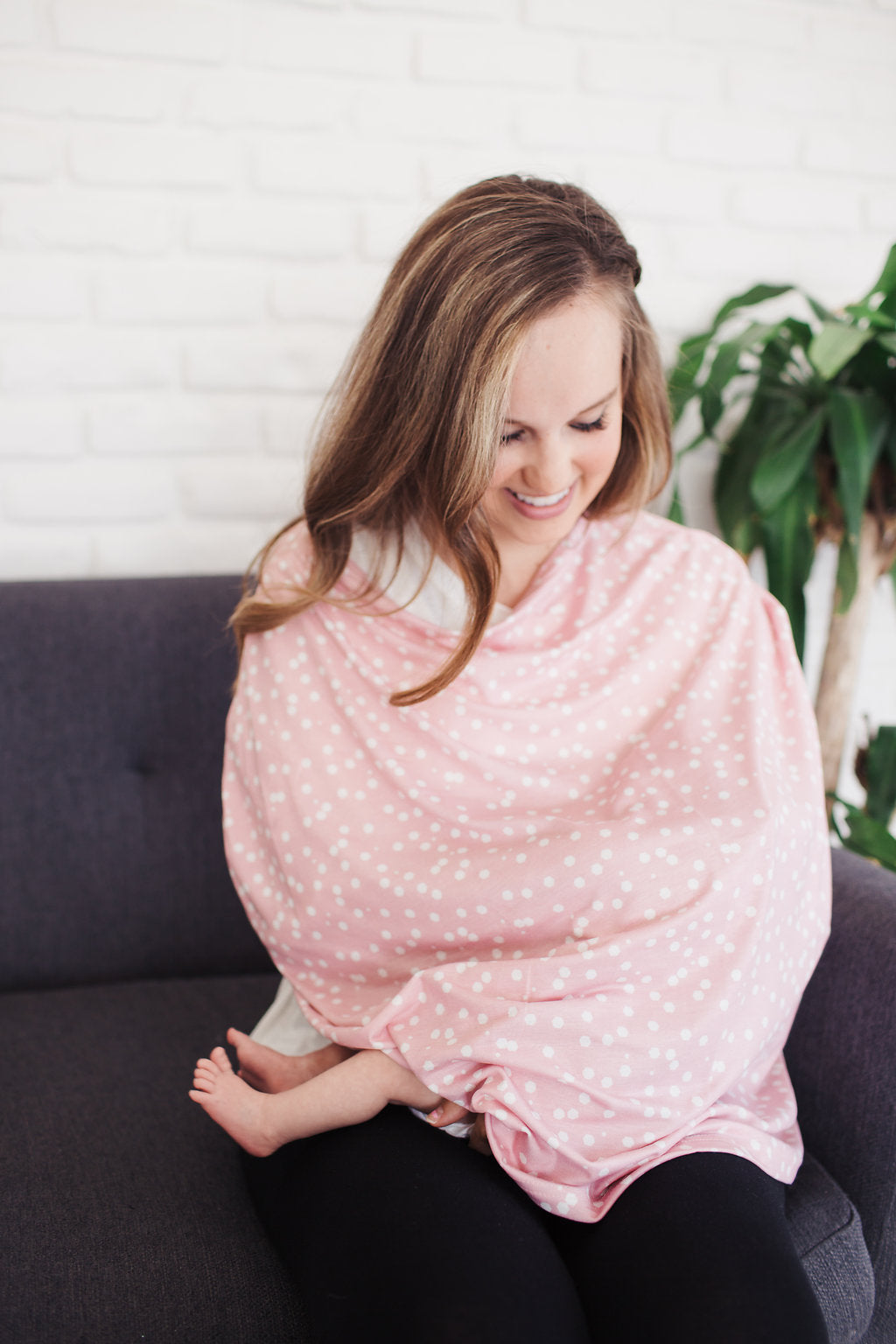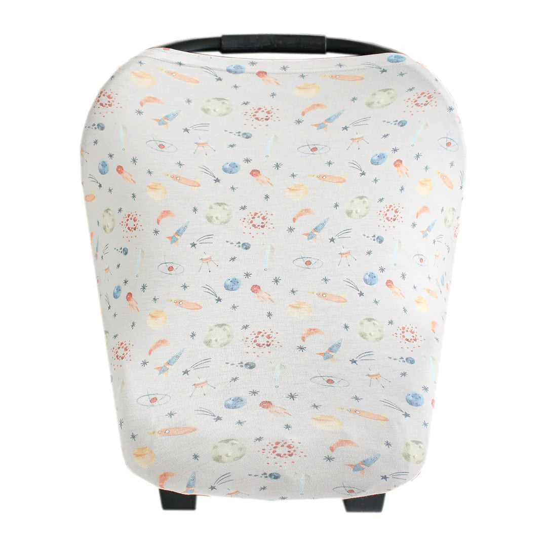 Stretchy fabric fits most all car seats, shopping carts, high chairs and nursing mothers. It can also be a trendy infinity scarf!