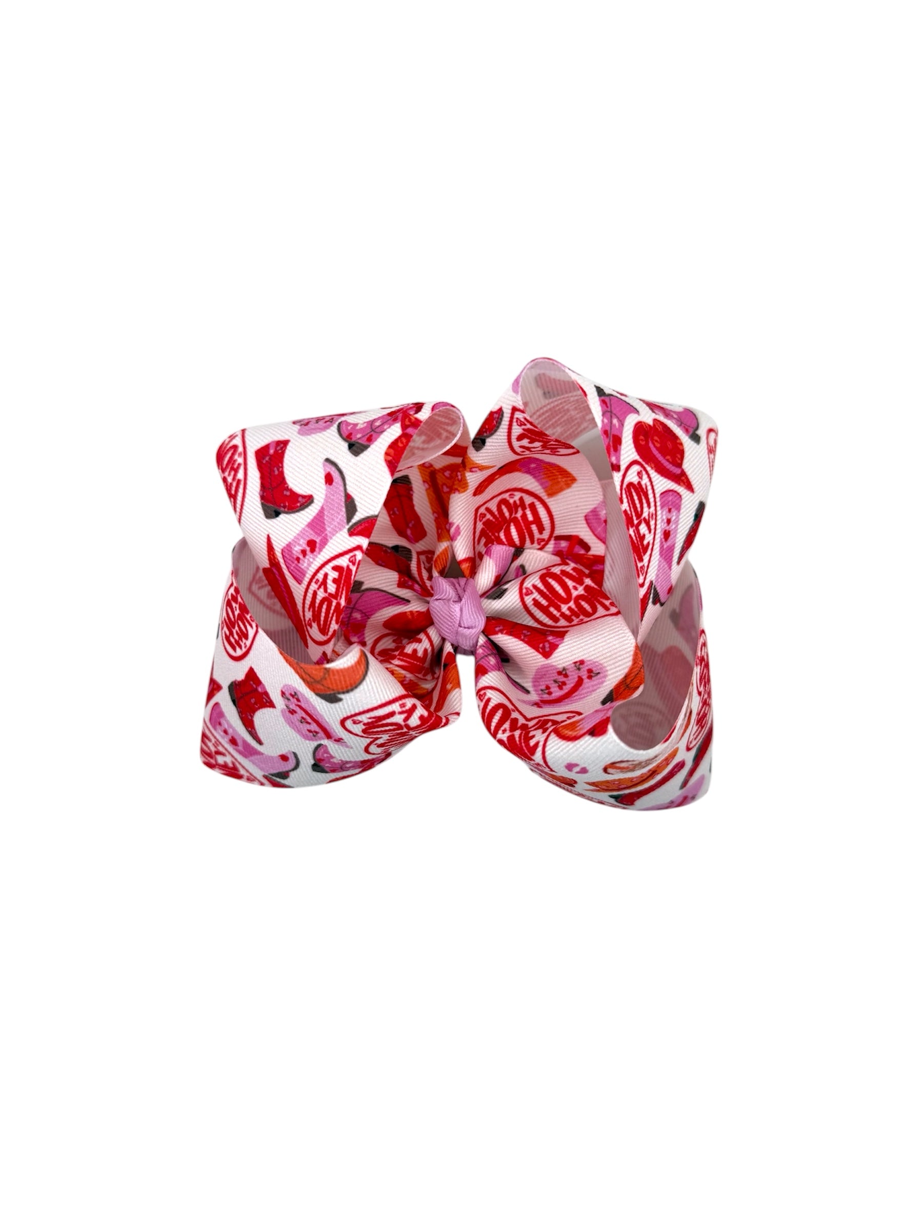 White Grosgrain Ribbon with different colored cowgirl hats and cowgirl boots! Made and designed in the USA on the highest quality grosgrain ribbon.