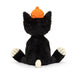 Jellycat Jack is finally here! This tuxedo cat has soft tufty fur, huge stitched paws and a friendly smile. With a long curved tail and L-shaped paws, Jellycat Jack has a soft velour crown of iconic orange jelly!