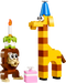 Bring some fun to a birthday celebration with a cute playset featuring a monkey holding a birthday cake above its head, a giraffe wearing a party hat, and a gift box.