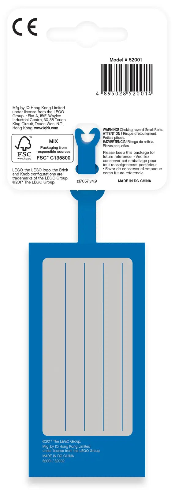 - Features a silicone LEGO® brick-style luggage tag with a strap and space on the back to add your personal contact information.