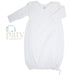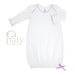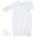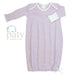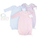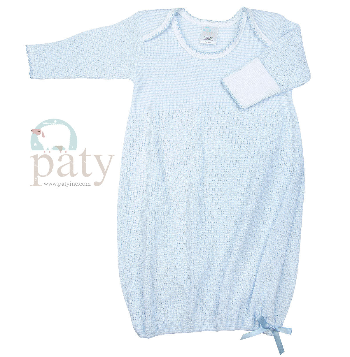 Classic Striped gown, signature 50/50 blend, Paty knit accented in matching picot trim.