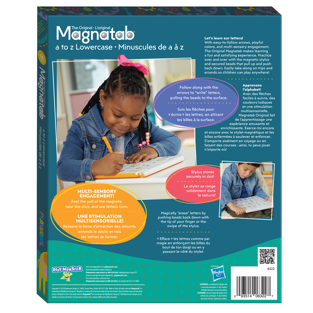Let’s learn our letters! With eay-to-follow arrows, playful colors, and multi-sensory engagement, The Original Magnatab makes learning a fun and satisfying experience. Practice over and over with the magnetic stylus and secured beads that pull up and push back down. Easily take along on trips and errands so children can play (and learn) anywhere!