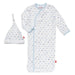 The cozy sleeper gown + hat set is a wardrobe staple for newborns who require constant diaper changes (aka all of them). with magnets down the front, baby stays in the gown during the diaper switcheroo: separate magnets, put on a freshy, click magnets, done. other amazing features: eco-friendly TENCEL™ modal fabric and built-in mitten cuffs.