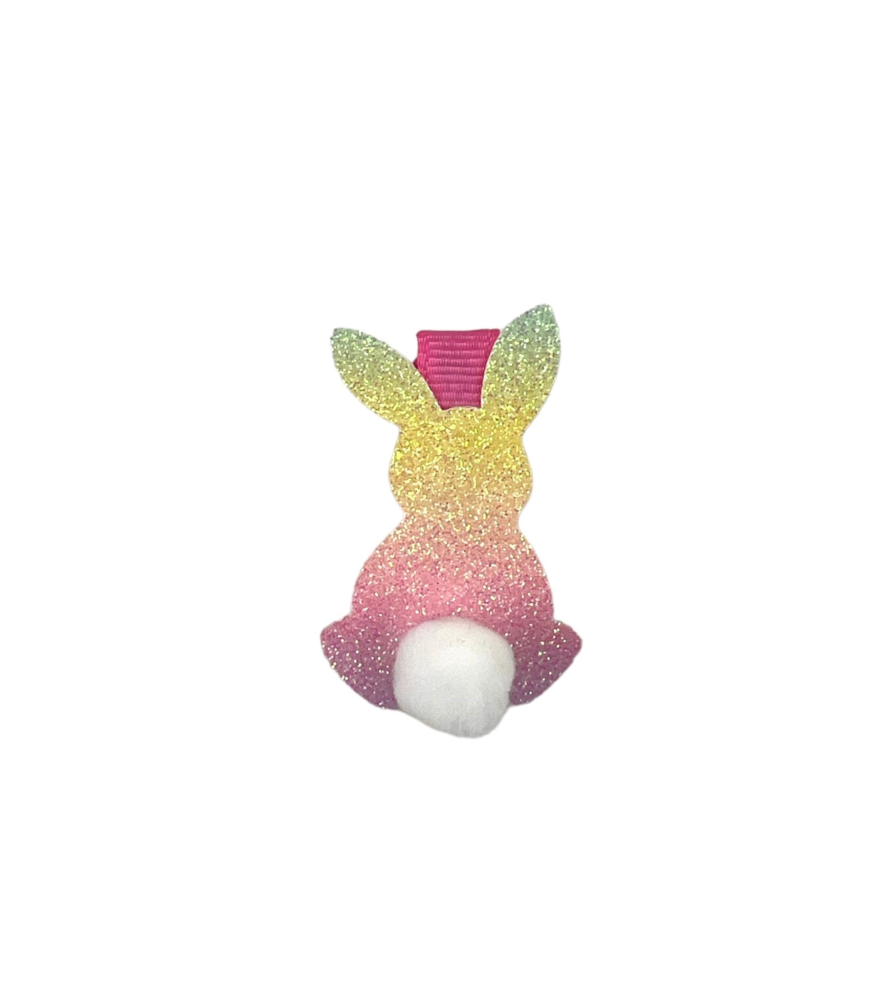 Fun bunny glitter clip measures 2" long with Pink grosgrain ribbon on clip.