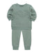He is sure to love this sweatshirt set that is a closet staple. The set includes a green, dinosaur detailed sweatshirt and matching sweatpants. 82% Organic Cotton, 18% Polyester