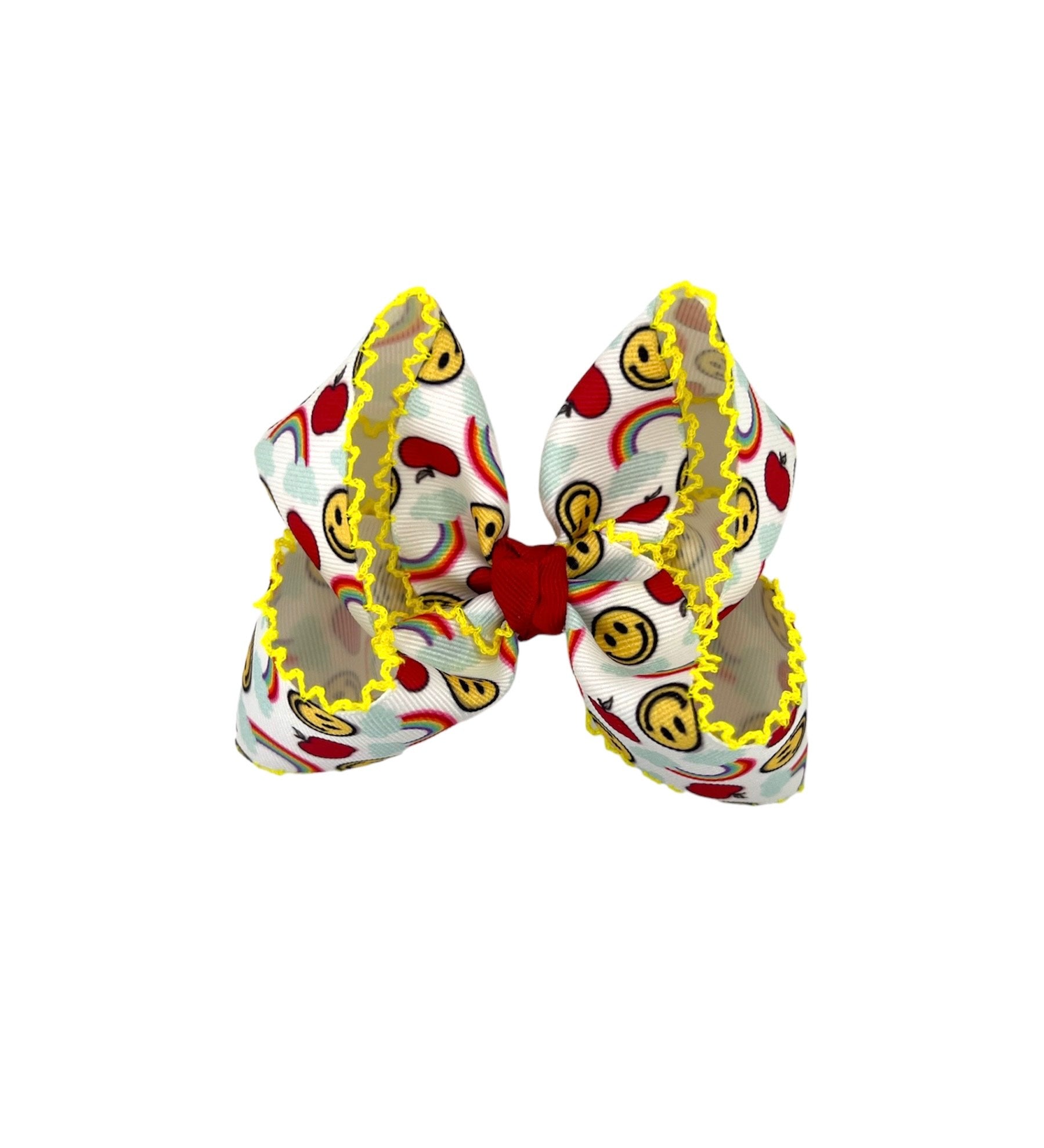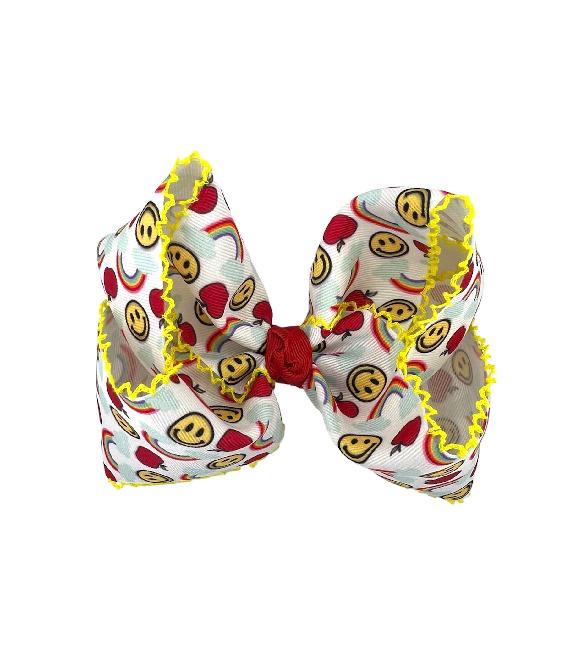 White Grosgrain moonstitch ribbon w Rainbows, smileys and apples!