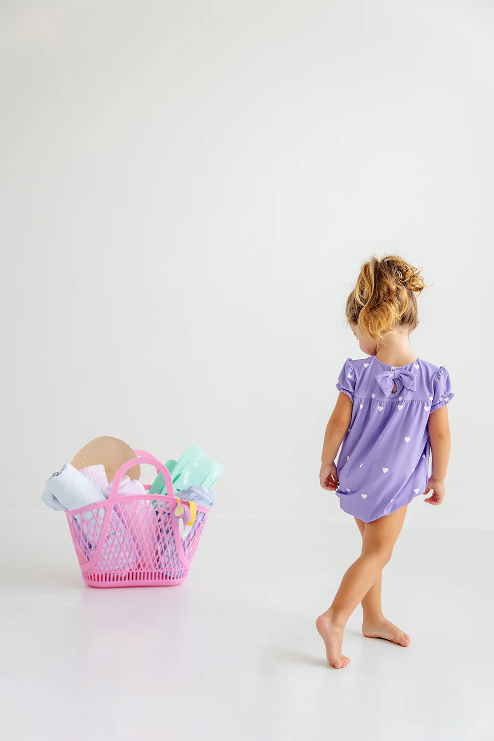Meet the Blythe Bathing Suit! We took one of TBBC's most popular bubbles and made it pool season approved. From the Heart Eyes print to the bow on the back, she'll love this precious suit!