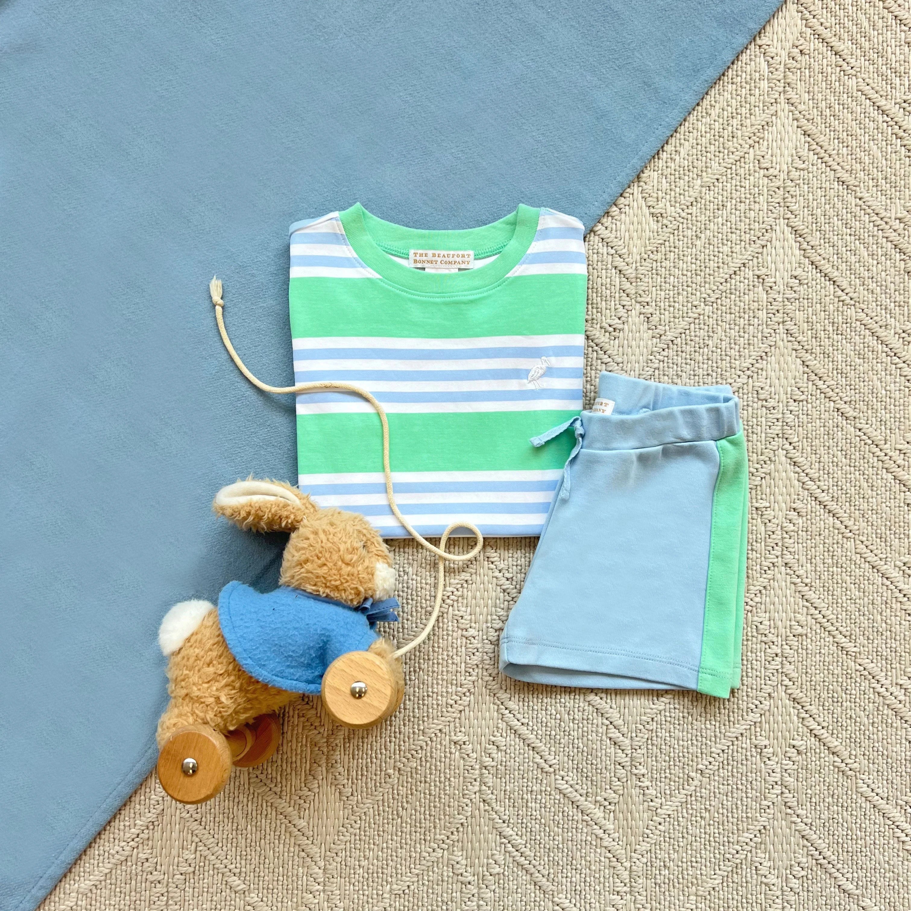 TBBC's Carter Crewneck is a little boy wardrobe essential. You'll want to buy a few (...in each size) because you'll be reaching for this classic Grace Bay Green Saddle Ridge Stripe crewneck all season long