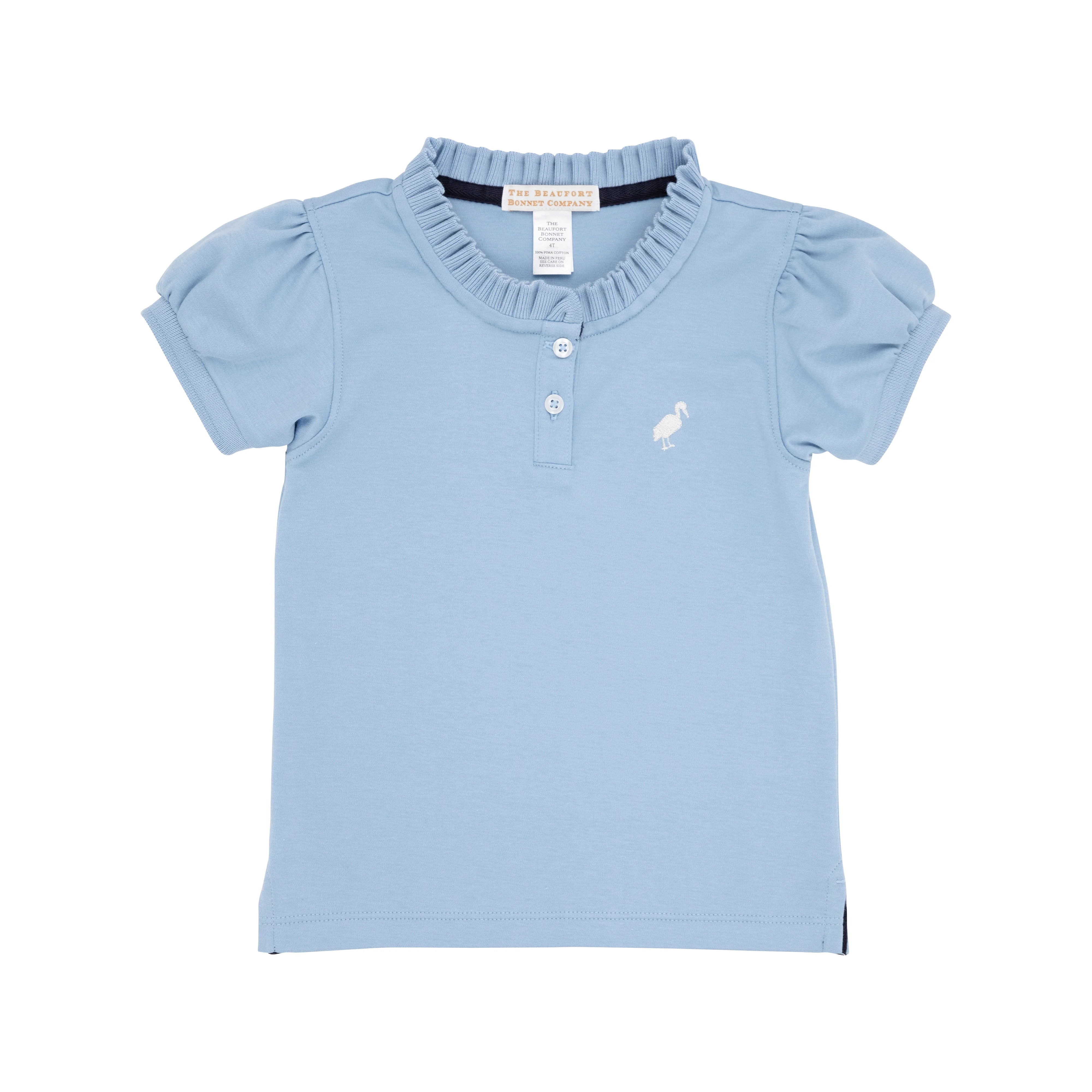 Your little lady will love wearing TBBC's Little Miss Prim & Proper Polo featuring Barrington Blue with Palmetto Pearl Stork! This top is perfect for school! We love that the collar adds a playful touch to this put-together top!