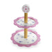 Includes 1 two-tier dessert tower, 8 pastries, and a pair of teacups, saucers, and stirrers. The tower stands about 10" tall and requires some simple adult assembly